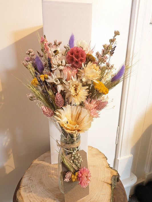 Sunset posy, dried flower flowers milk bottle