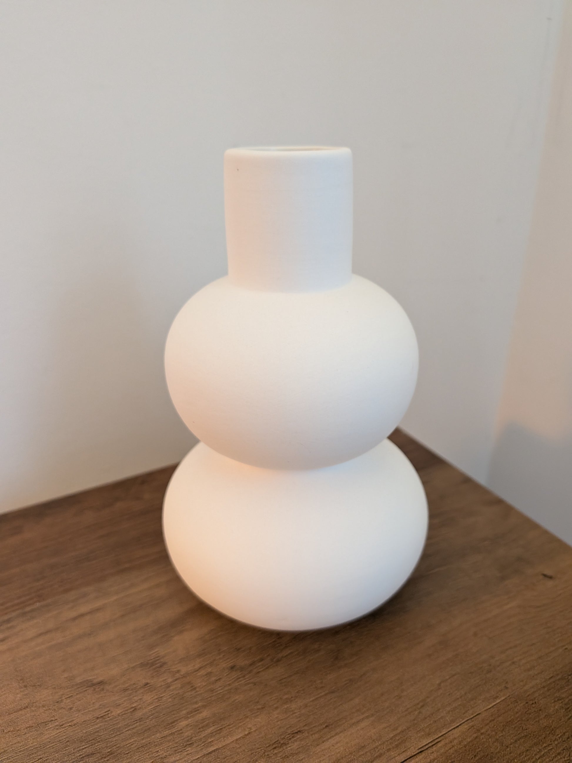 Presented in a contemporary matte white ceramic vase with a stacked-sphere silhouette, creating a striking balance between organic and modern design.